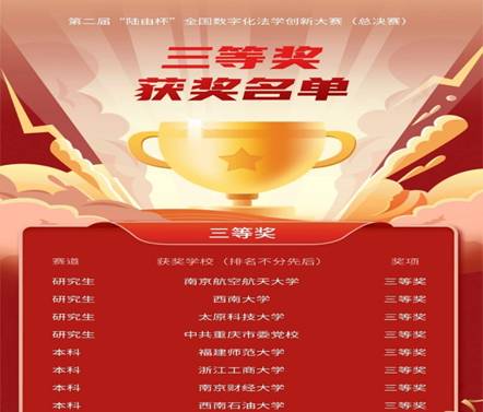我们本科生代表队荣获第二届“陆由杯”全国数字化法学创新大赛三等奖